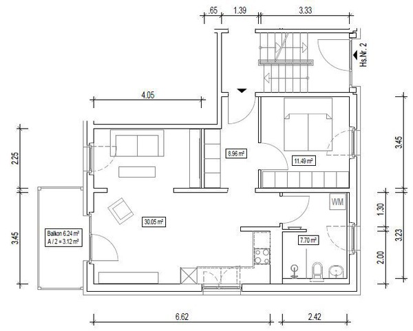 - 2 Raum-Wohnung mit 61 m² Wohnfläche, Aufzug und Balkon