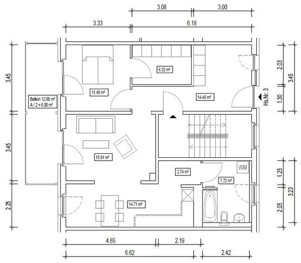- 2 Raum-Wohnung mit 79 m² Wohnfläche, Aufzug und Doppelbalkon