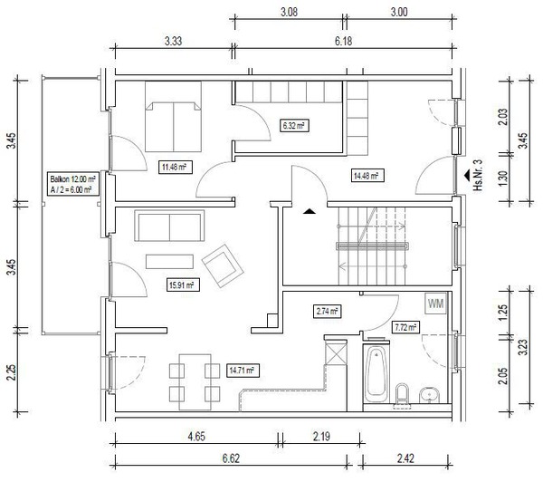 - 2 Raum-Wohnung mit 79 m² Wohnfläche, Aufzug und Doppelbalkon