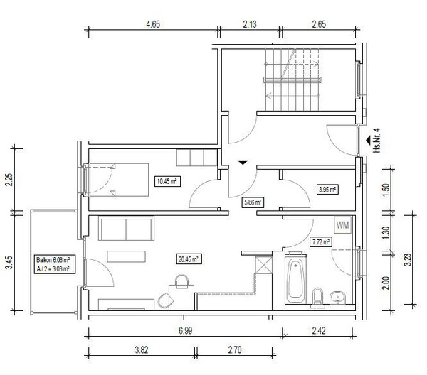 - Bad mit Wanne, offene Küche, Abstellraum
