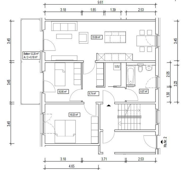 - 3 Raum-Wohnung mit 86 m² Wohnfläche, Aufzug und Doppelbalkon