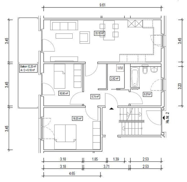 - 3 Raum-Wohnung mit 86 m² Wohnfläche, Aufzug und Doppelbalkon